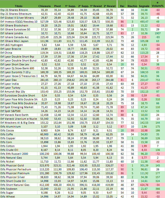 Pivot point ed eccessi Etf - 10 ottobre