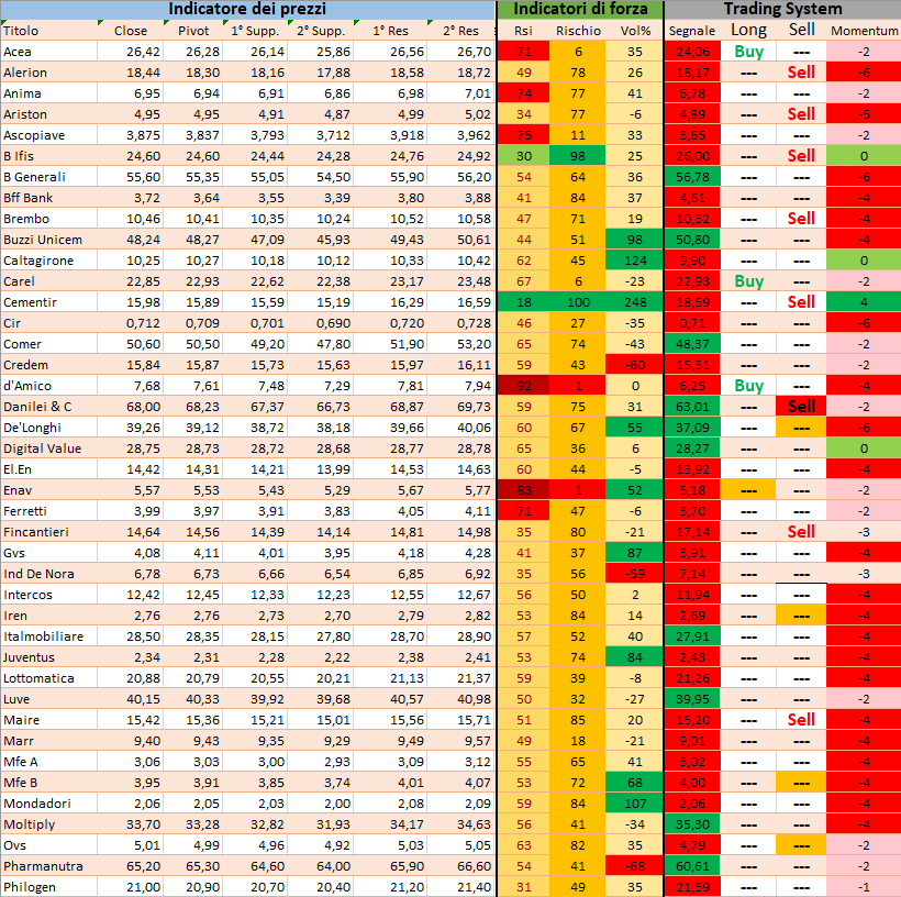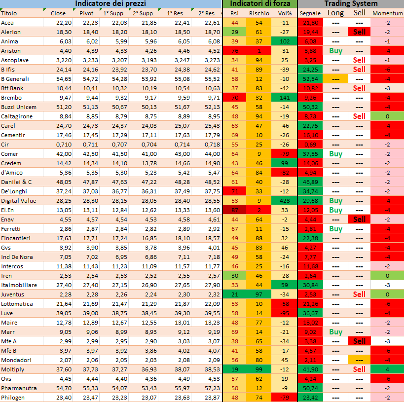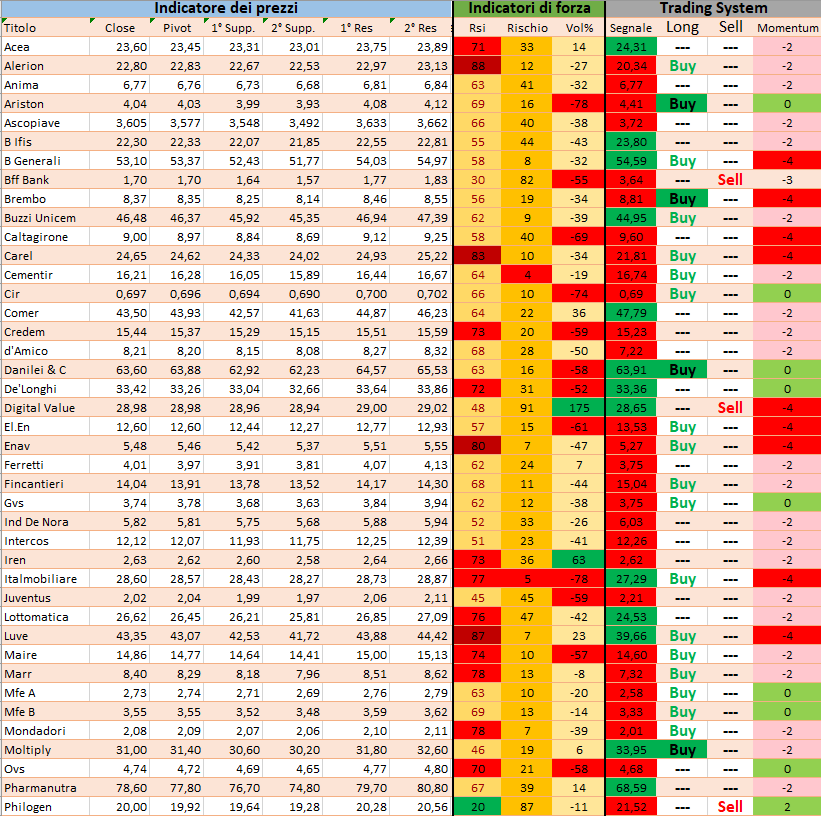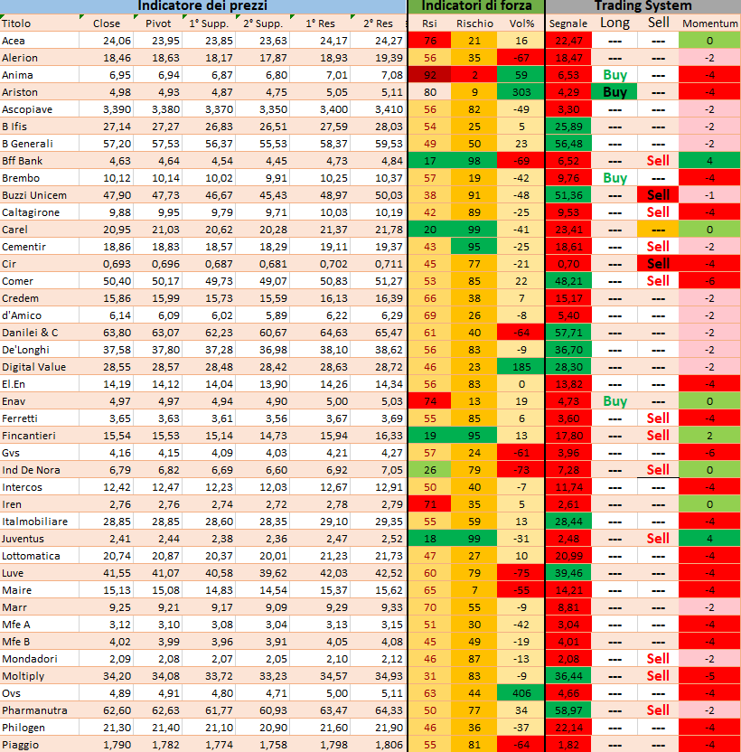 Da oggi rimarranno fisse le indicazioni che genererà il trading system sul breve termine (segnali più affidabili) con le seguenti modalità:
