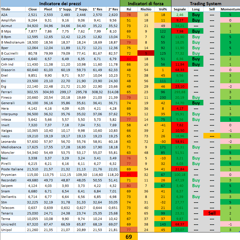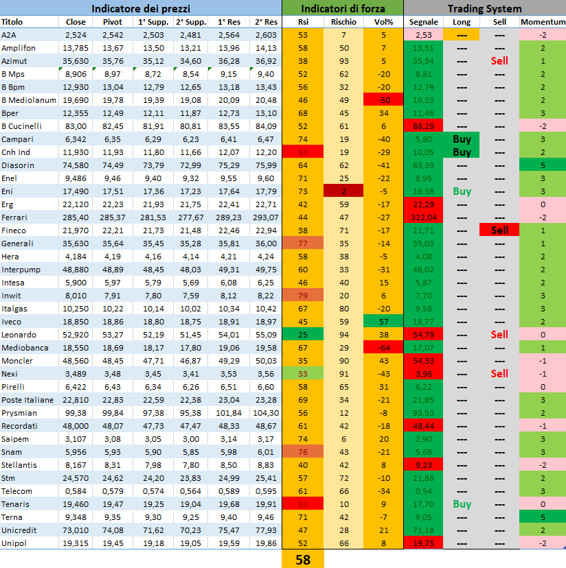 Momentum: forza del titolo, rispetto al proprio trend. Base di riferimento gli ultimi 90 giorni di seduta aperta.