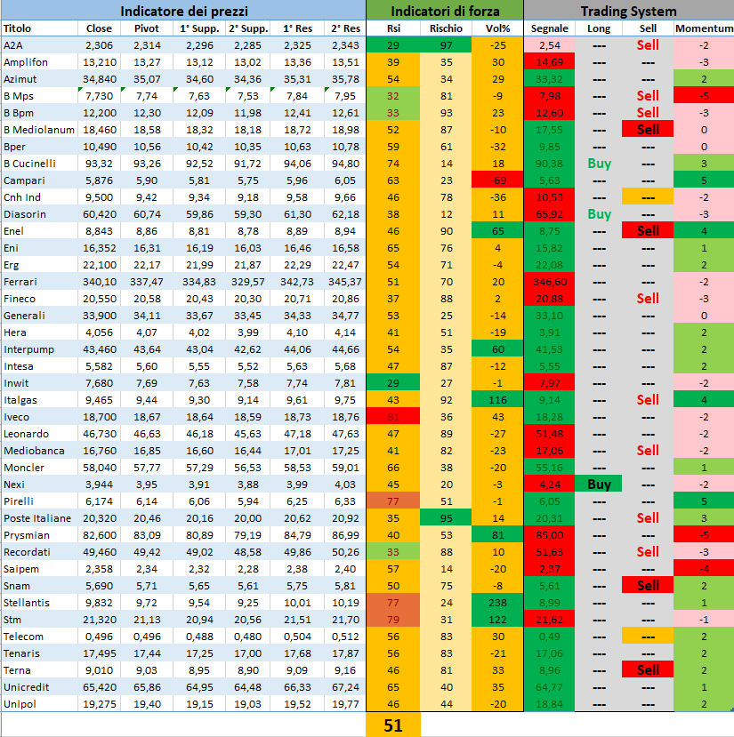 Segnale: valore determinato dal nostro trading system:
