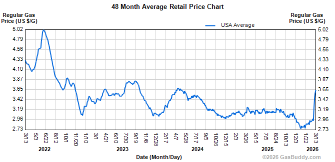 Il grafico che misura l’andamento del prezzo della benzina al distributore americano: poco meno di 3.65 dollari al gallone. La tendenza è verticale ed è del tutto probabile che il prezzo tenderà a salire anche nelle prossime sedute. Sicuramente gli Usa si arricchiscono con il rialzo del prezzo del greggio perché è vero che sono i maggiori produttori di greggio al mondo ma Trump si è “dimenticato” di dire che sono le compagnie petrolifere a guadagnare. Il cittadino americano ne paga le conseguenze e storicamente si sa che il limite del dolore per i portafogli Usa è la zona di 3.90/4 dollari al gallone. Sopra questa soglia i redditi bassi non sono in grado di affrontare la spesa al distributore per l’intero mese.