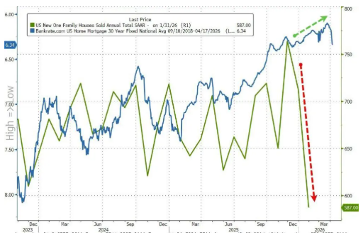 Il dato di vendita di case nuove è il peggiore dal 2022 e il calo da un mese all'altro, in termini percentuali, è il peggiore degli ultimi 13 anni (come segnala ZeroHedge).