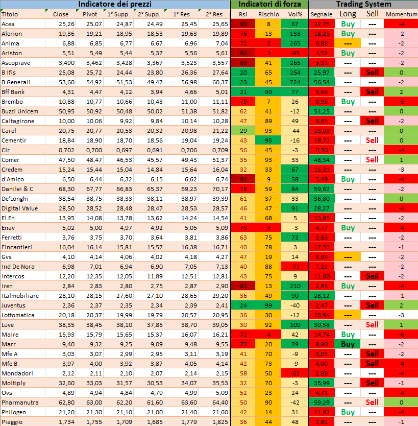 Da oggi rimarranno fisse le indicazioni che genererà il trading system sul breve termine...
