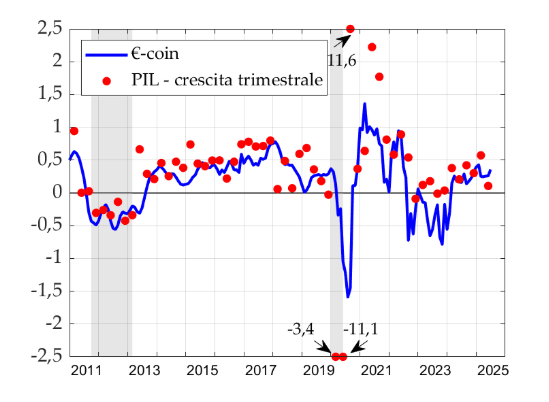 In agosto €-coin è salito a 0,47 (da 0,36 in luglio).