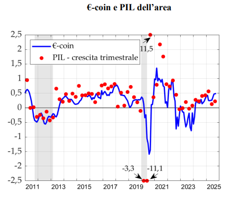In ottobre €-coin è rimasto pressoché invariato rispetto al mese precedente (0,49 da 0,48 in settembre).