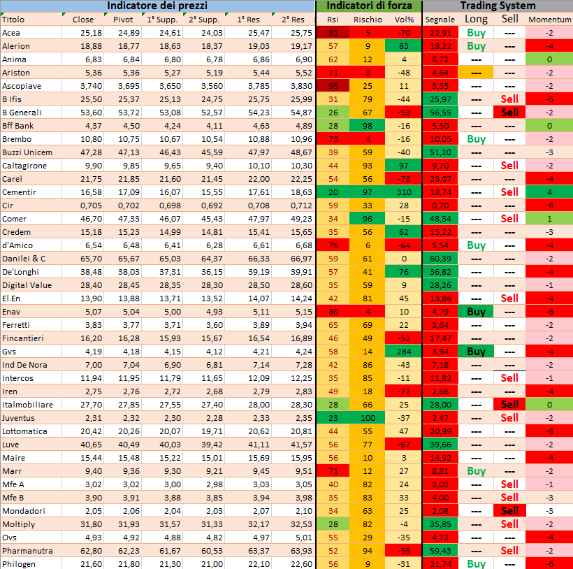 Da oggi rimarranno fisse le indicazioni che genererà il trading system sul breve termine (segnali più affidabili) con le seguenti modalità: