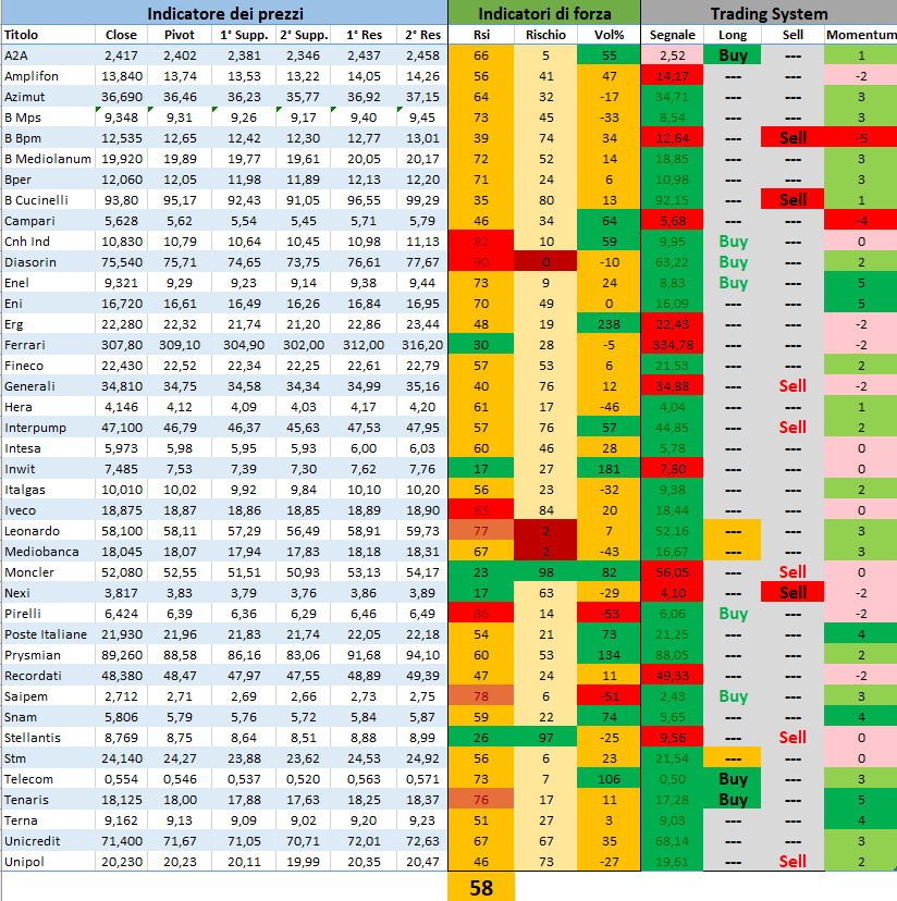 Momentum: forza del titolo, rispetto al proprio trend. Base di riferimento gli ultimi 90 giorni di seduta aperta.