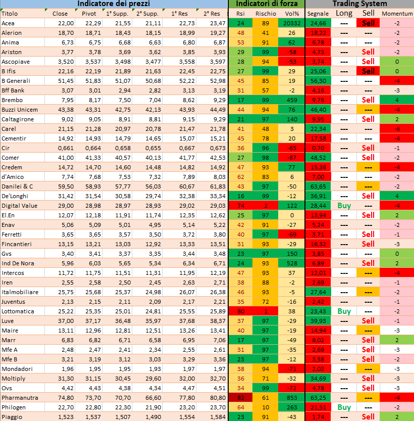 Da oggi rimarranno fisse le indicazioni che genererà il trading system sul breve termine...