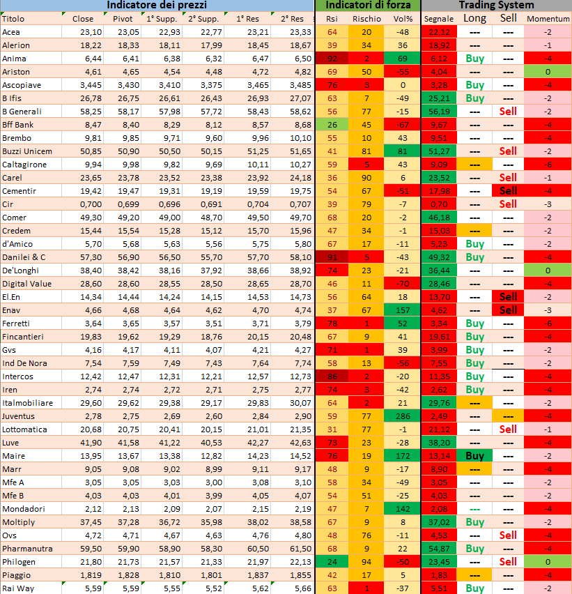 Da oggi rimarranno fisse le indicazioni che genererà il trading system sul breve termine...